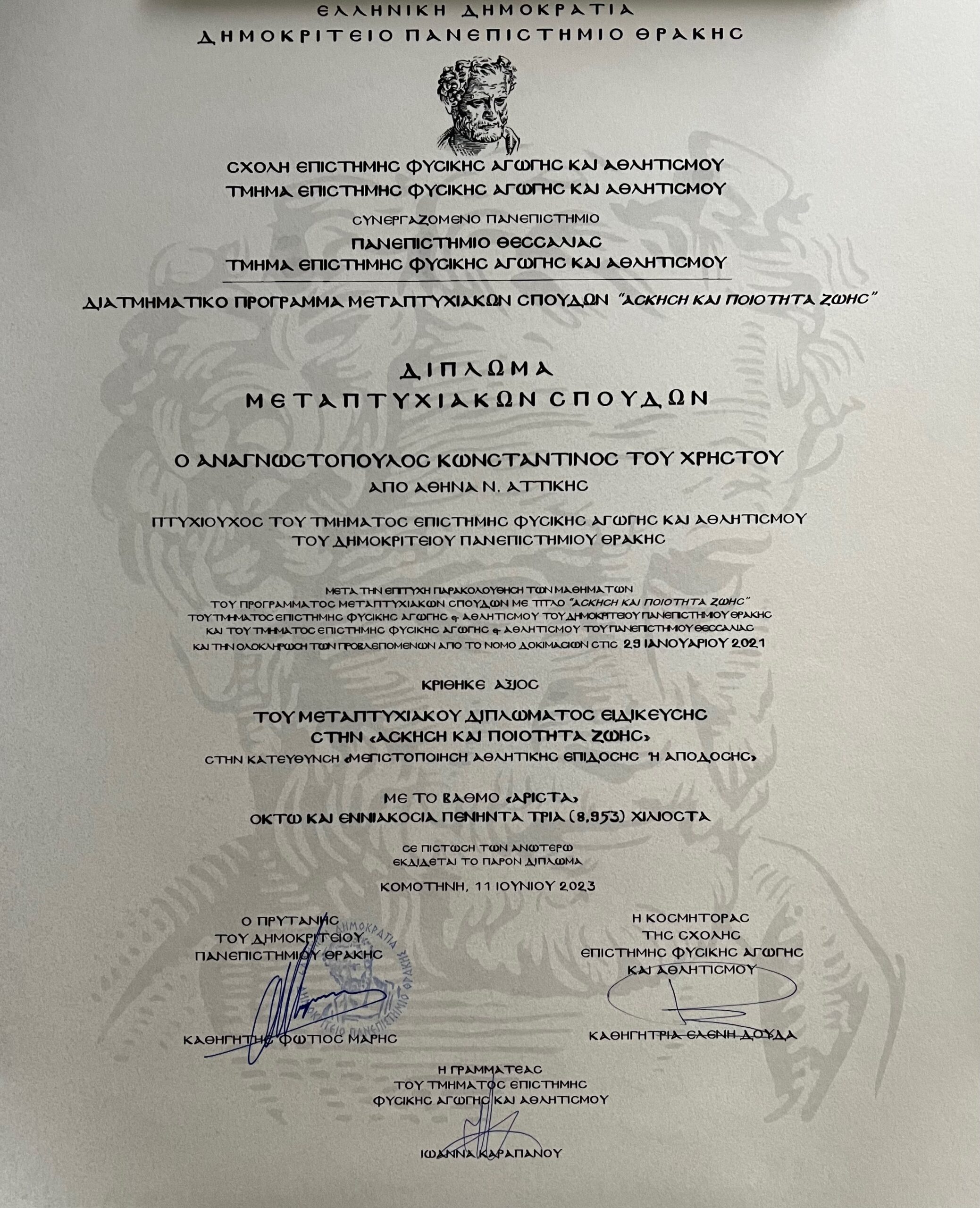 Από τη στιγμή που ξεκίνησα γυμναστική με τον Κωνσταντίνο το σώμα μου έχει αλλάξει, έχω περισσότερη αντοχή αλλά και η ψυχολογία μου είναι πολύ ανεβασμένη!!Κωνσταντίνε συνέχισε έτσι και να θυμάσαι πως εισαι ο καλύτερος ever…Εισαι ΣΠΟΥΔΑΊΟΣ!!!!!